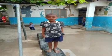 Ein großes Problem ist aktuell ein großes Loch in der Mauer. Aus Korallenstein gebaut, umrandet sie den gesamten Kindergarten. Die Kinder pullen immer wieder Steine heraus.